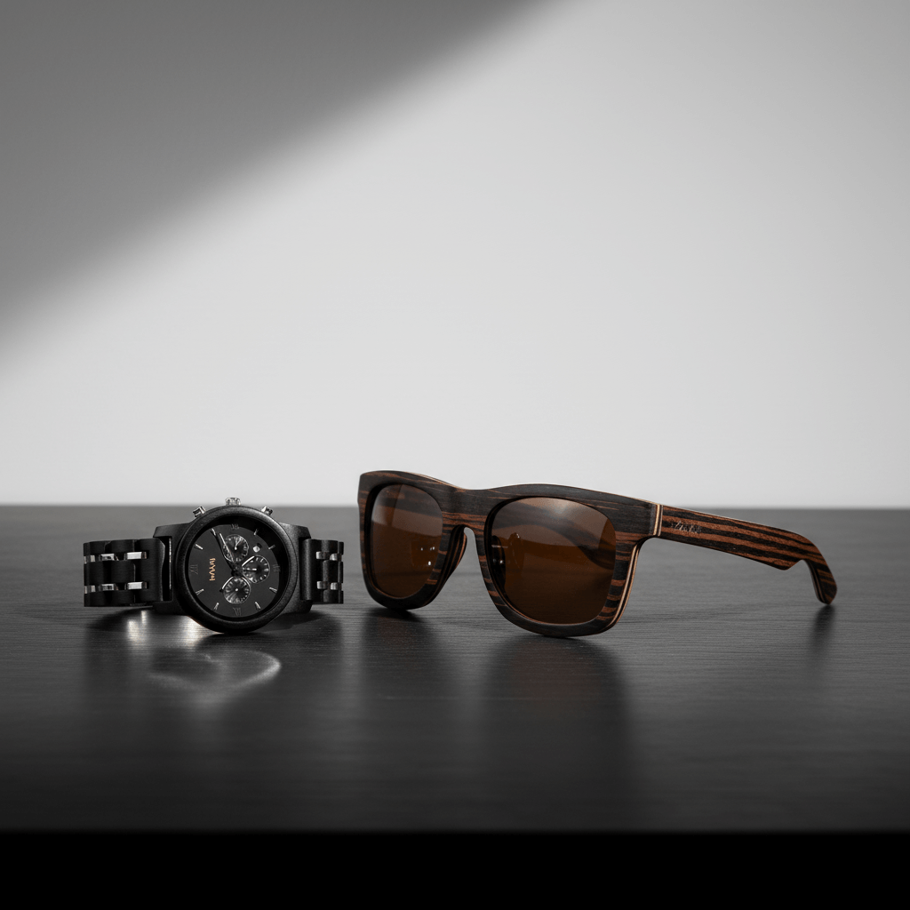 Material: Äkta svart ebenholts, mörkt naturträ och polariserade UV400-linser.